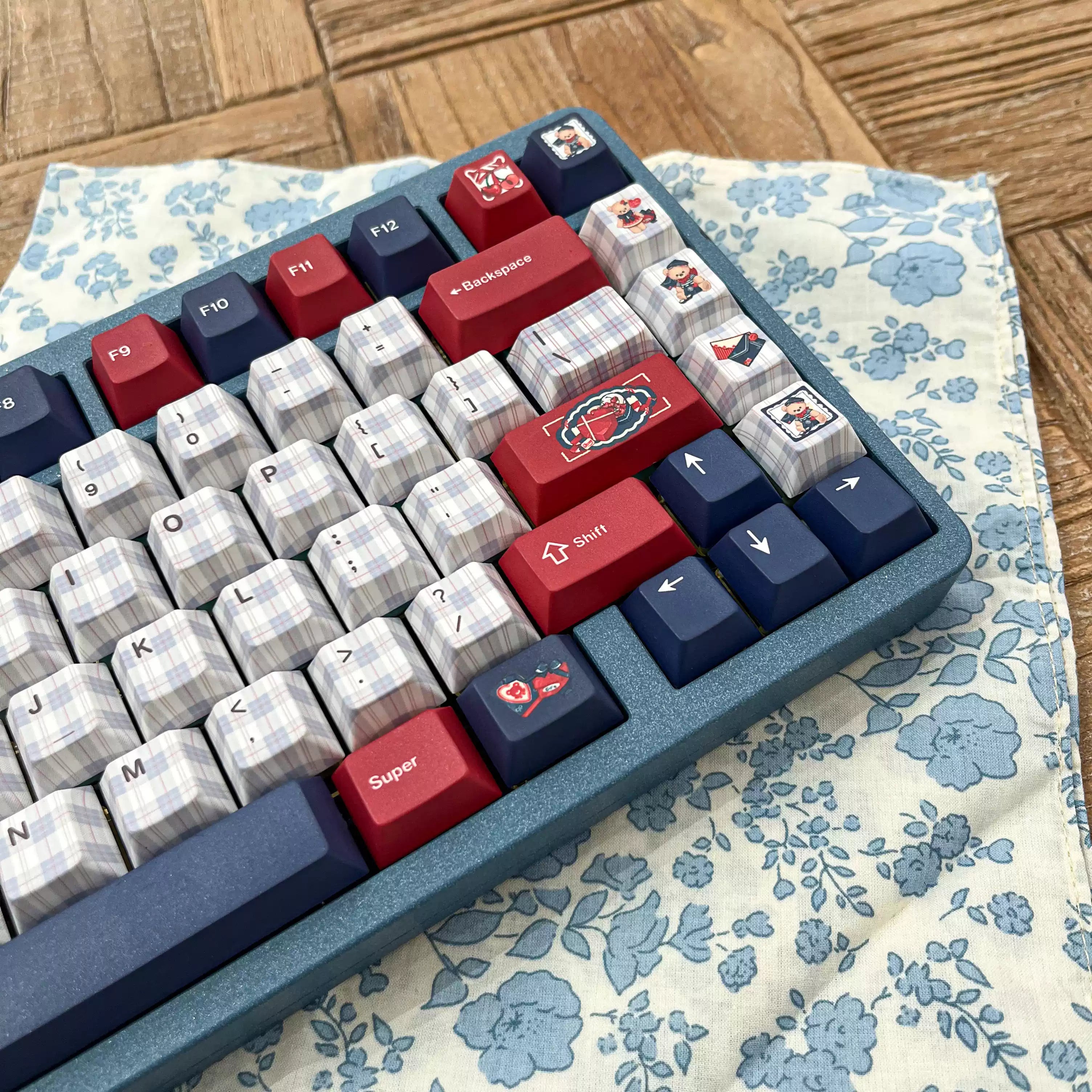 Keyria Labs / Nautical Diary Notebook Cute Red and Blue Bear PBT Custom Keycaps Five-Side Thermal Sublimation